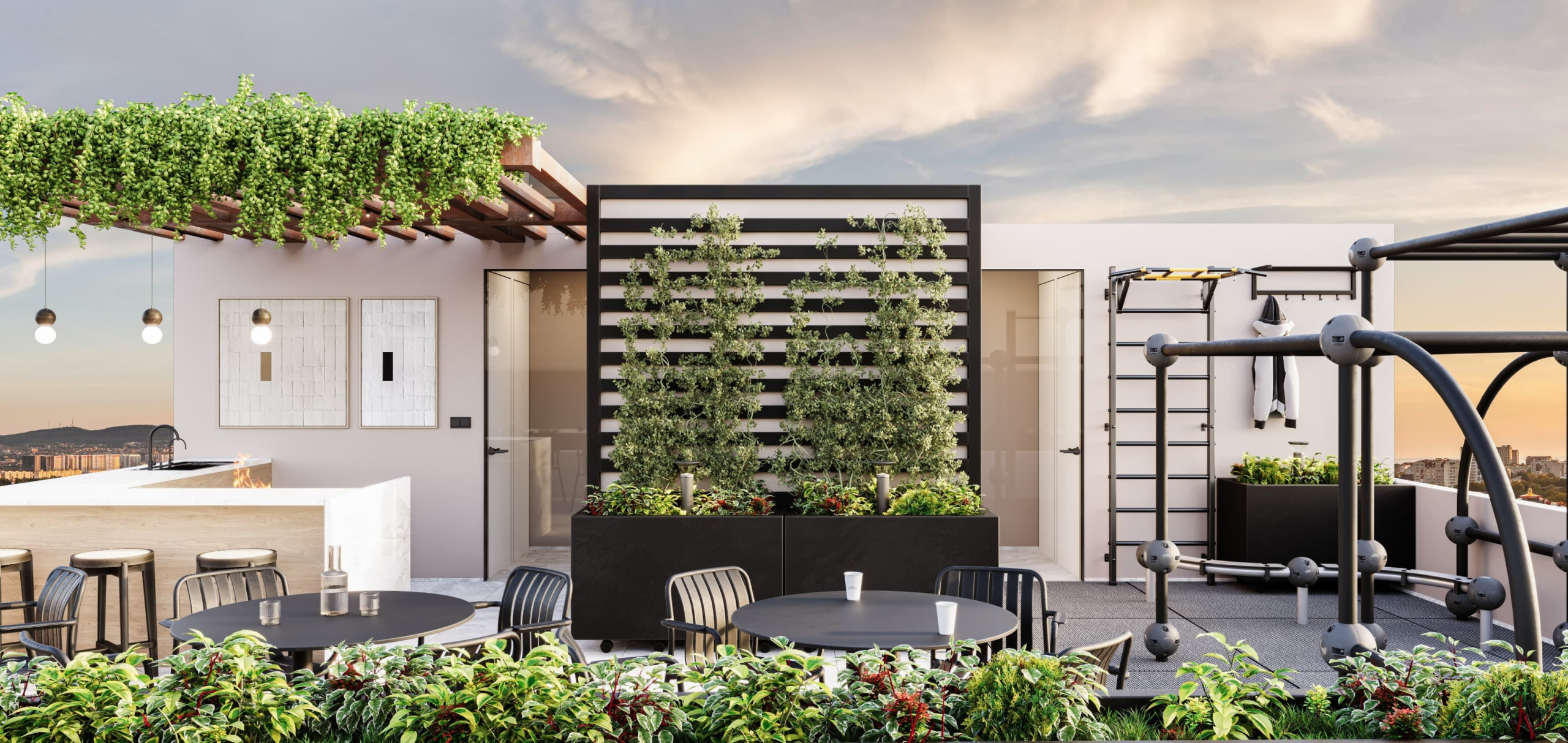 🍷 Roof Garden con Asadores: El spot perfecto para tus reuniones con vistas a la ciudad.